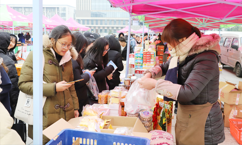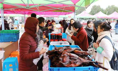 酱鸭、醉蟹、香肠、鱼干;土鸡蛋、干货、酱料;大米、油、水果……12月27日-28日,资产经营公司在大学生活动中心北广场举办“情系父母,年味带回家”年货节,百余种特色年货向师生销售。