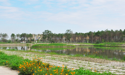 为此,在学院领导的大力支持下,自暑期开始,基建后勤处开始着手打造人工湖,创新性的实行挖湖植荷、筑岛引鸟、沟渠贯通、临湖造景工程,工程挖湖12162平米,因树定界,尽可能保留存活的树木,因树造景,以两颗乌桕树为基础在湖中修筑一白鹭生境岛。湖外设排水沟渠,疏浚设松树林内积水;湖内设计常水位70cm,使沟渠与湖体连通,高出部分沿西侧沟渠排入大树江;湖沿种植水生植物、迎春花、硫华菊、波斯菊等景观植物,又利用西大门改造废弃的花岗岩铺设观景平台,打造休闲新景观。经过改造后的5万平米北区松树林焕然一新,“北区松树林变样儿了,真漂亮”,新学期返校后,像这样的赞叹声和惊喜热议在师生口中不绝于耳。