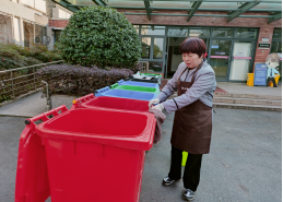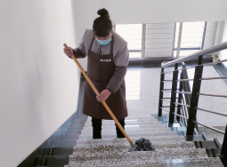 物业的保洁员--校园内处处有她们的身影。每天天蒙蒙亮时,勤劳的保洁员工们手持清扫工具,把校园的每条道路、教学楼、图书馆等打扫的干干净净,为了校园内的整洁美丽辛勤的付出着。