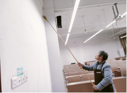 物业维修工程人员,他们在平凡的工作岗位上默默的付出。在那堵塞的下水道旁,是他们用娴熟的操作将其疏通。在意外跑水的现场,是他们第一个冲上前去,水冲湿透了身上的衣裤,他们一心只想把损坏的阀门换的更快一些。他们工作在第一线,不怕脏累,为师生们排忧解难。